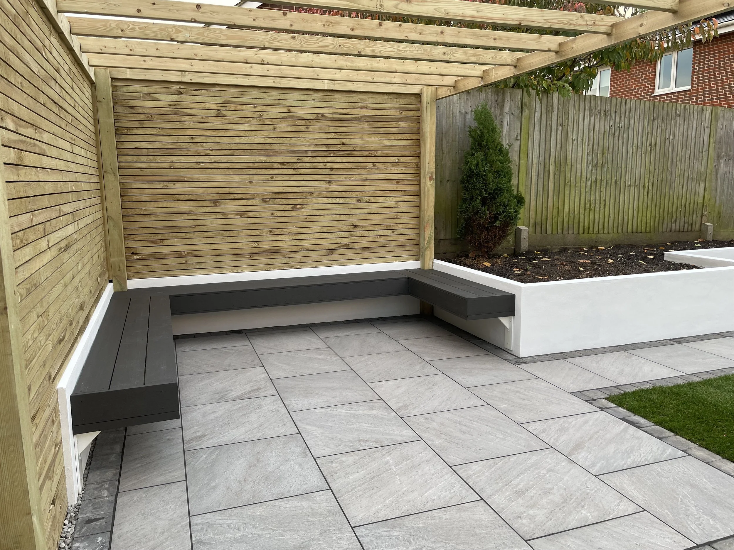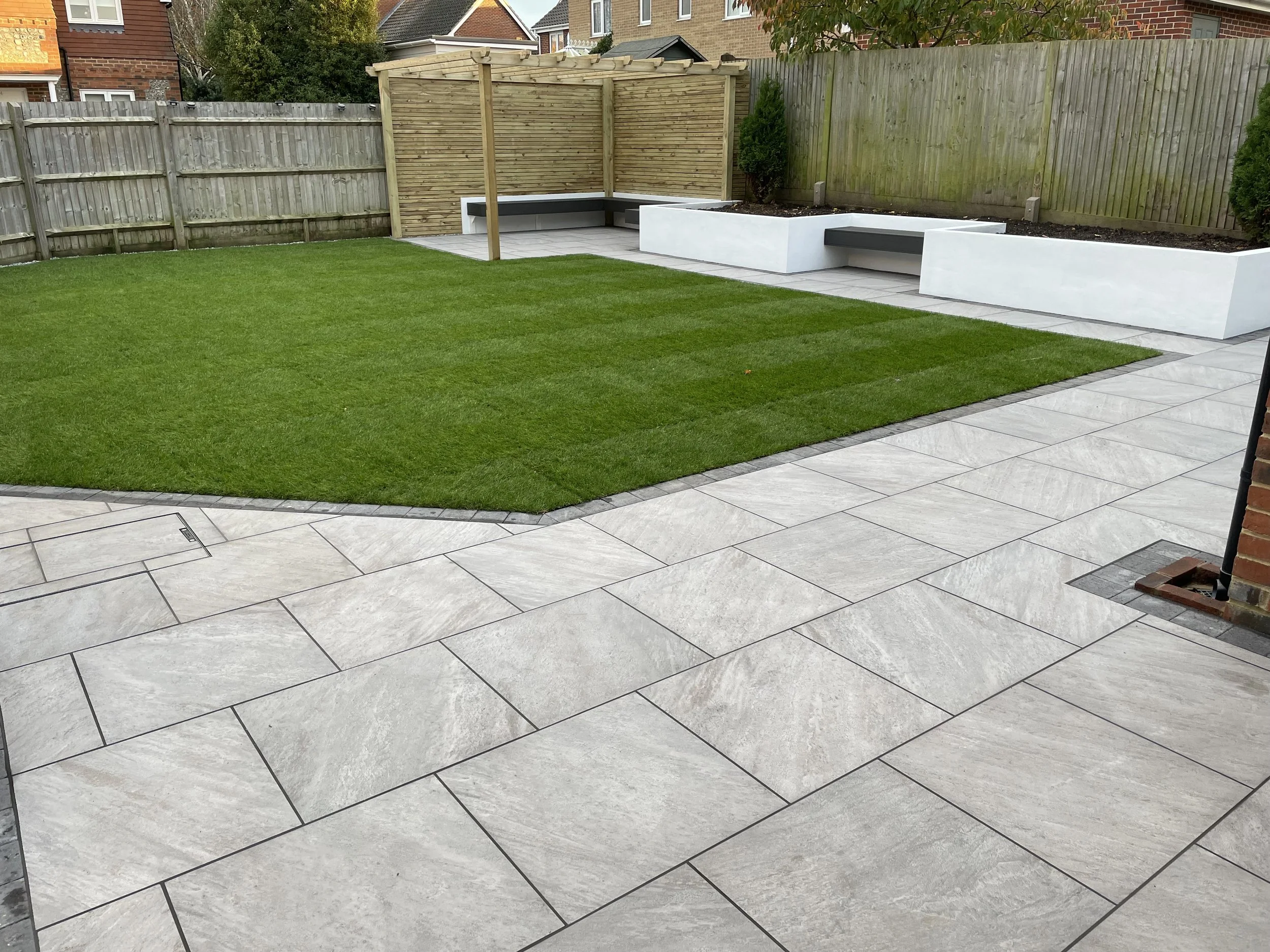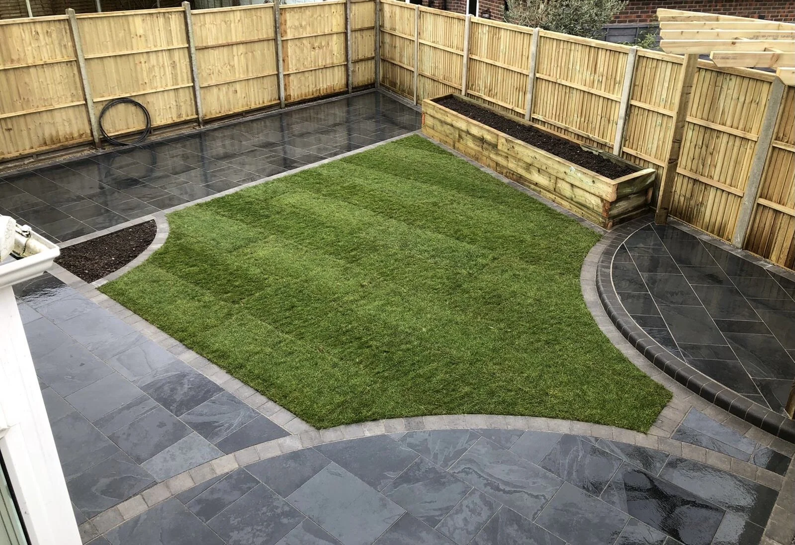 Work undertaken — Artificial Grass, Brickwork in the Garden, Composite Decking, Decking, Garden Design, Garden Rooms/Annexes, Garden Structures, Hard Landscaping, Shed Bases, Sheds, Sleepers and Turfing.