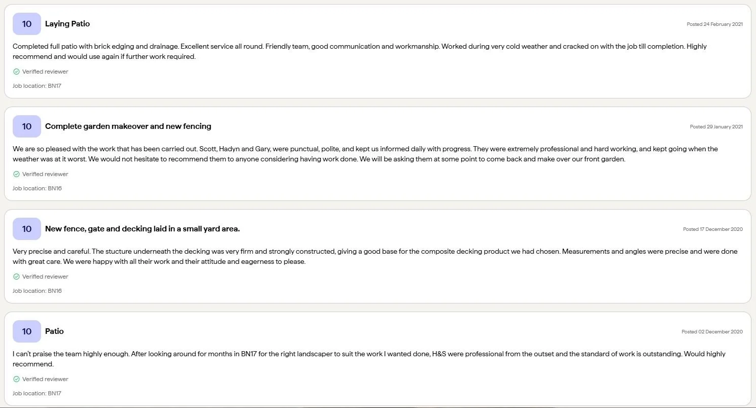 “We chose H&S Landscaping because of their flawless score history and we are happy to maintain this score as the work was amazing. Proper hard grafting lads. I cannot recommend them enough.”